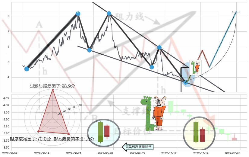 ➢ 🕰 价格走势在2022-07-15至2022-07-18期间形成中流砥柱形态,残存影响值:4.92