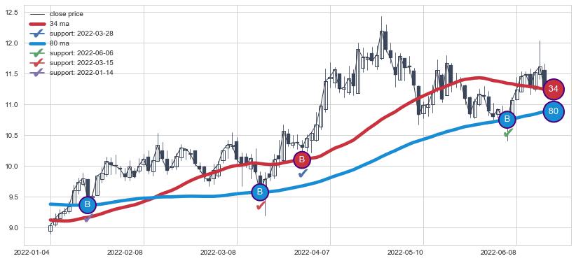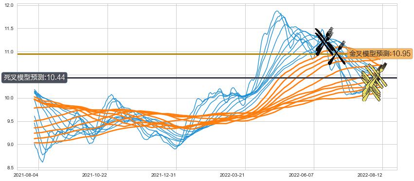 ➣ 60小时均线于(2022-06-16: 11.16)形成【死叉】基于【死叉历史模型】预测死叉后最低波谷价格: 10.50, 死叉后最低价格9.94,已经下跌超出预测最低波谷价格, 预期反弹