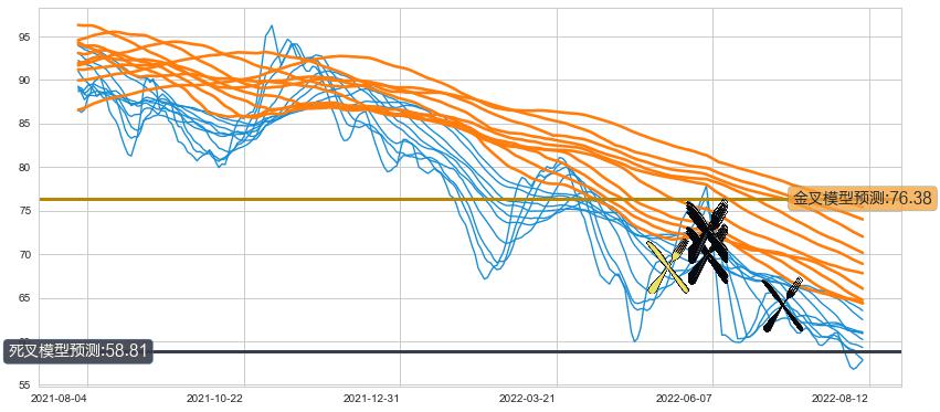➣ 60小时均线于(2022-06-02: 72.50)形成【死叉】基于【死叉历史模型】预测死叉后最低波谷价格: 57.81, 死叉后最低价格55.76,已经下跌超出预测最低波谷价格, 预期反弹