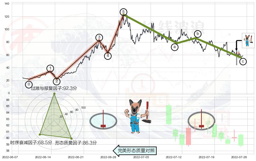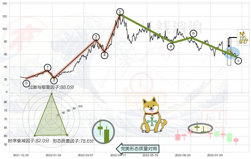 ➢ 谐波蝴蝶临近d拐点上涨支撑 🔜 波浪理论c点回调终止反转上涨 综合量化分数:51.83 【中性】