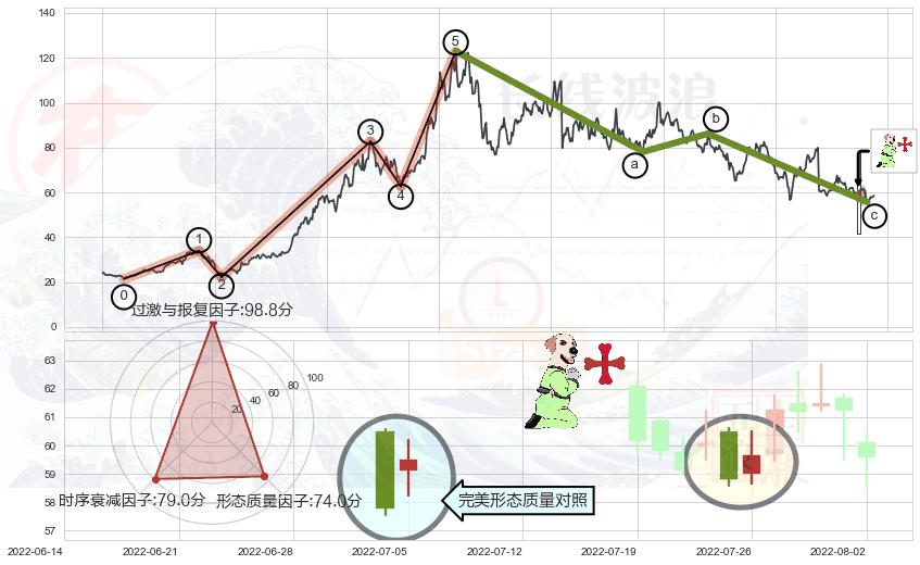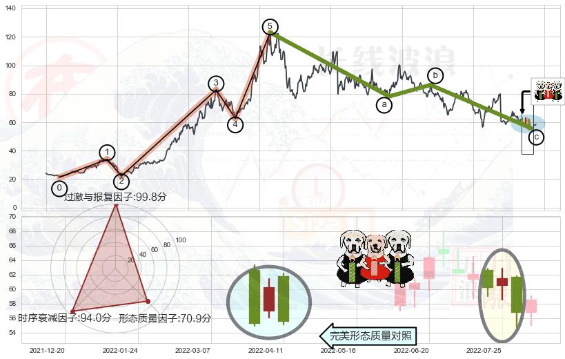 ➢ 下跌孤独十字星 🔜 波浪理论击穿破位C点继续下跌 综合量化分数:45.54 【偏空】
