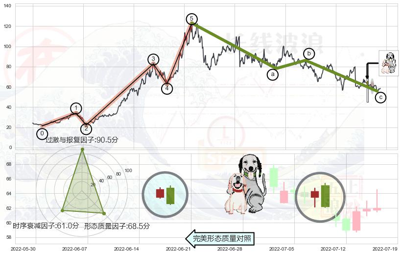 ➣ 下跌孤独十字星 + 波浪理论击穿破位C点继续下跌信号叠加后【信号初始稳固度】中等,【看空】信号叠加【可信度影响中等】