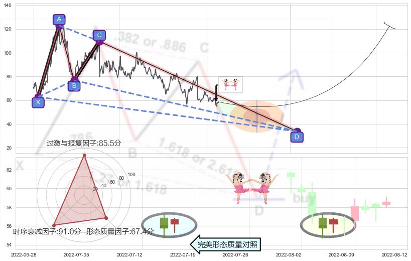 ➢ 双针探底 🔜 谐波蝴蝶临近d拐点上涨支撑 综合量化分数:54.32 【偏多】