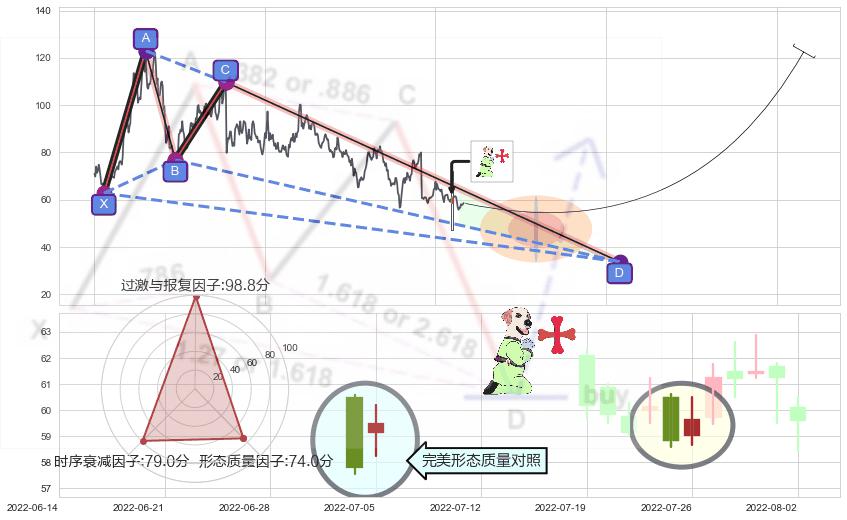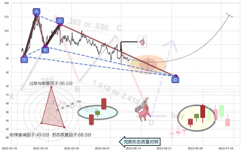➢ 多方炮 🔜 谐波蝴蝶临近d拐点上涨支撑 综合量化分数:50.49 【中性】