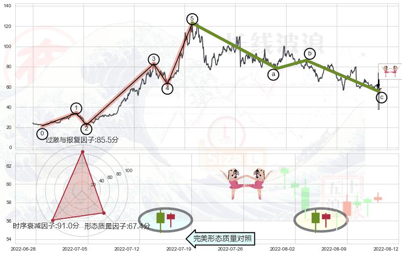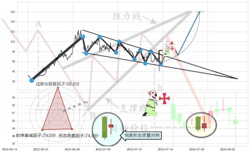 ➢ 🕰 价格走势在2022-07-18至2022-08-01期间形成两黑夹一红,残存影响值:-4.47