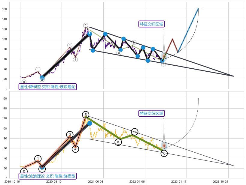 ➢ 降楔型与波浪理论信号事件周期长度级别相同,同周期信号事件