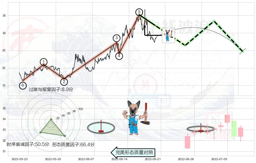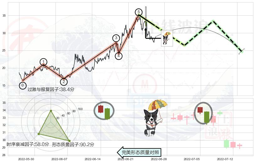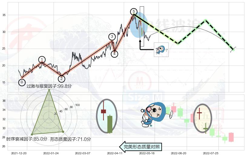 ➢ 看跌(高位倒锤头)流星线 🔜 波浪理论上涨浪:浪5回调拐点 综合量化分数:46.50 【中性】