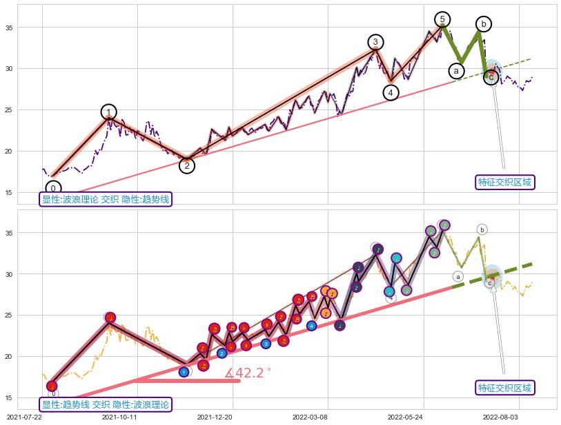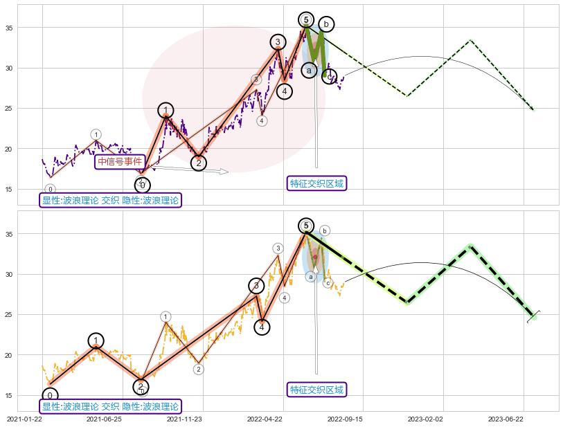 ➣ 波浪理论:猜想击穿破位c点后继续下跌 → 下跌 → 风险信号 → 小趋势跟踪