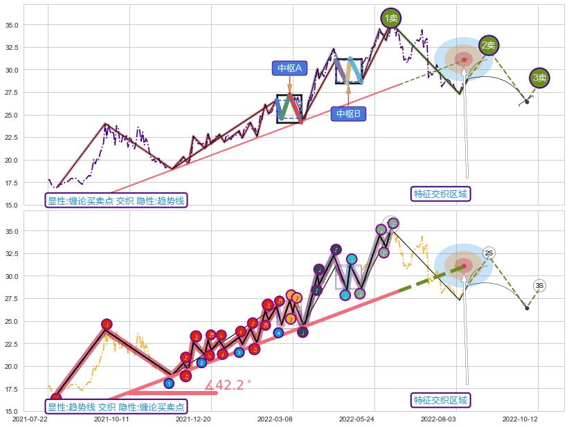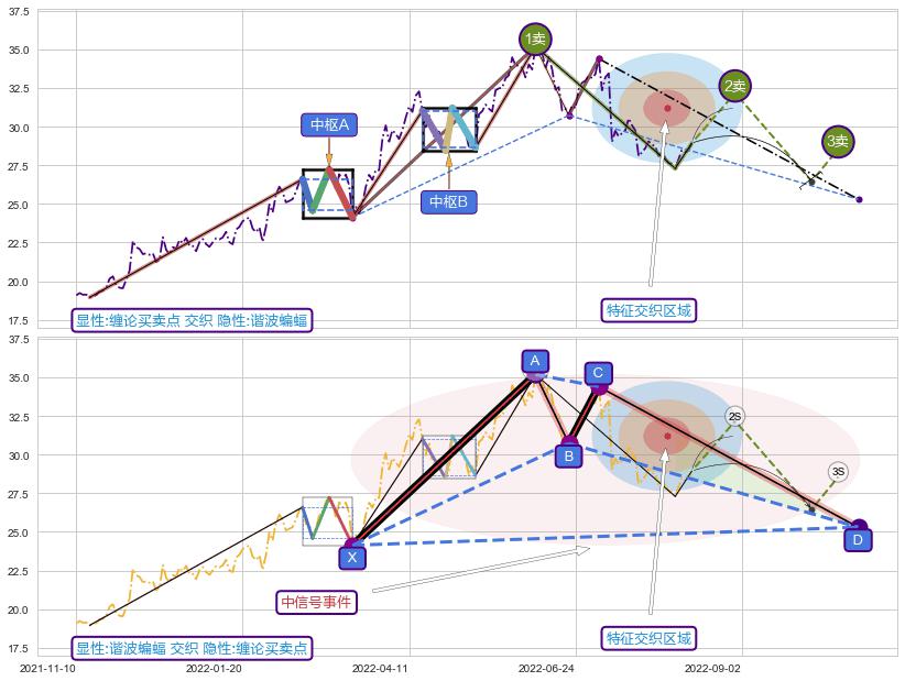 ➣ 缠论买卖点:猜想2卖持续蓄力下跌至3卖 → 下跌 → 风险信号 → 小趋势跟踪