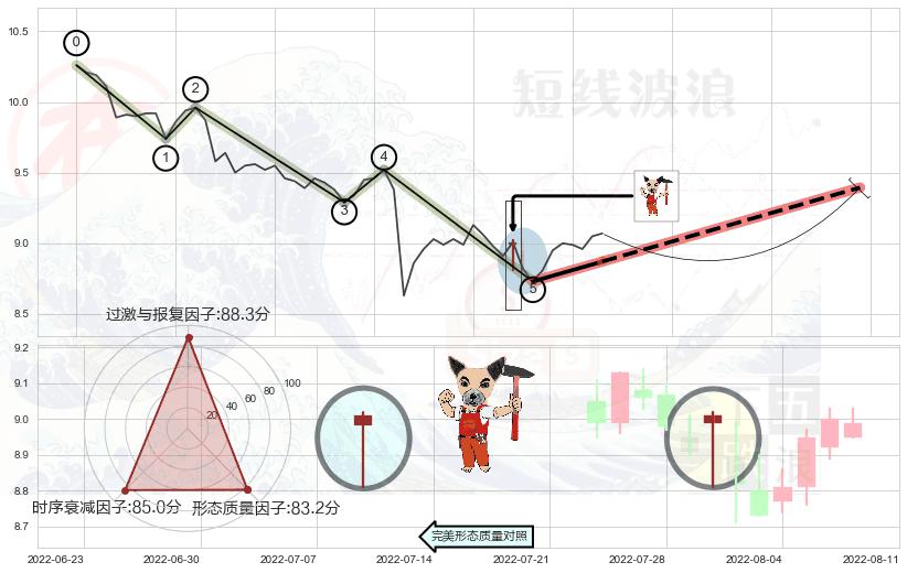 ➢ 🕰 价格走势在2022-08-04至2022-08-10期间形成低档五阳线,残存影响值:5.88