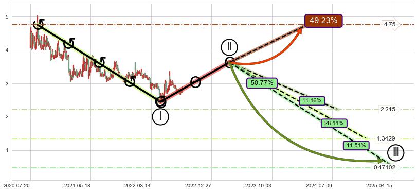 ➣ AI预测: 假定反转启动后, 第❸目标位置(2023-06-28, 2.450)