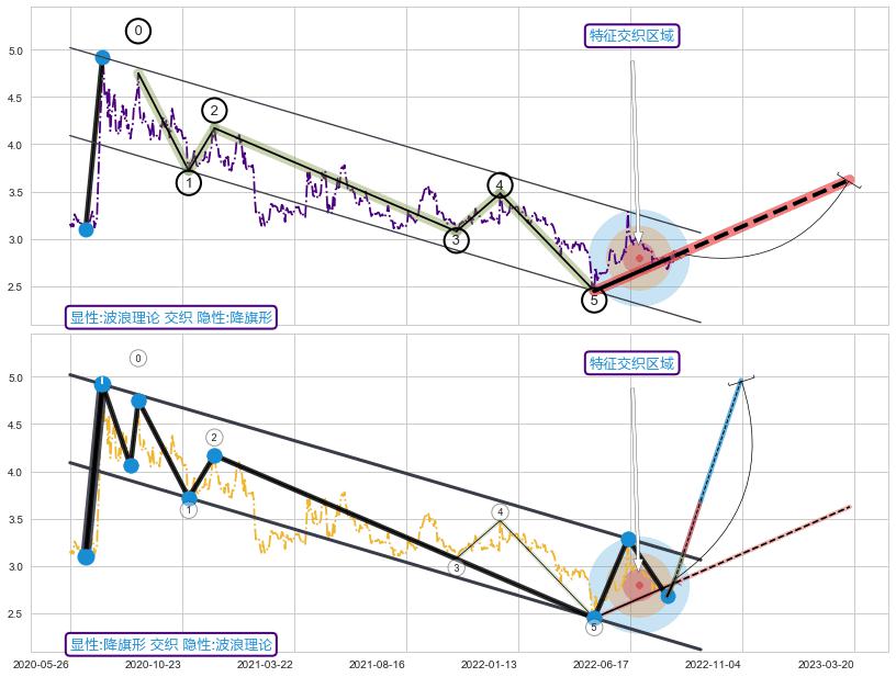 ➢ 波浪理论与降旗形信号事件周期长度级别相同,同周期信号事件