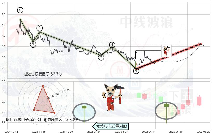 ➢ 锤头线(锤子线) 🔜 波浪理论下跌浪:浪5反弹拐点 综合量化分数:53.60 【偏多】