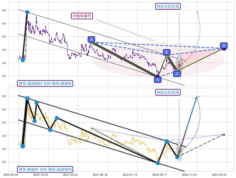➢ 谐波伽利属【中级别信号事件】降旗形属【长级别信号事件】中长周期组合信号事件,中长事件长度比56.17%