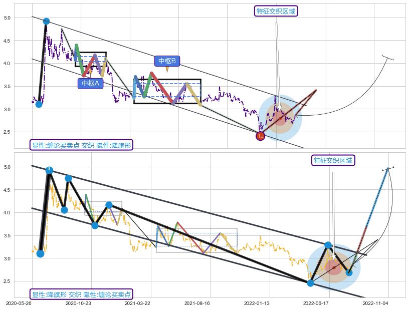 ➣ 缠论买卖点:下降缠中枢AB形成后猜想拐点1买已到达,猜想后续持续拉升(均值回复)