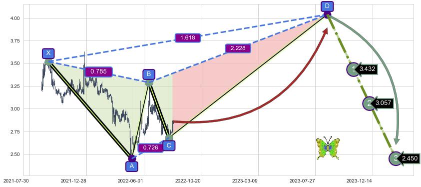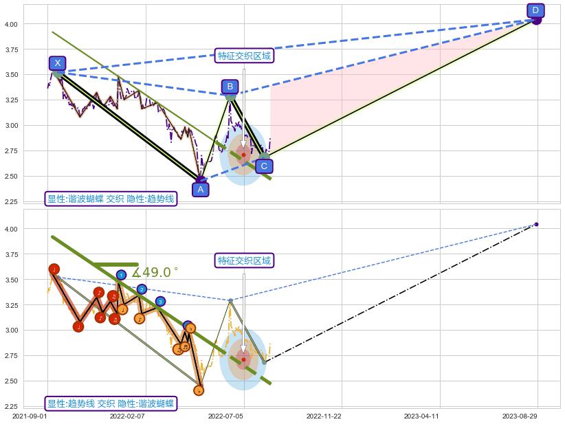 ➣ 未完成【蝴蝶】形态起点X: 2021-09-15, 已到达C点: 2022-08-03, 预测最终D点: 2023-08-25, 共488交易日