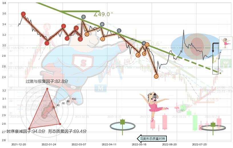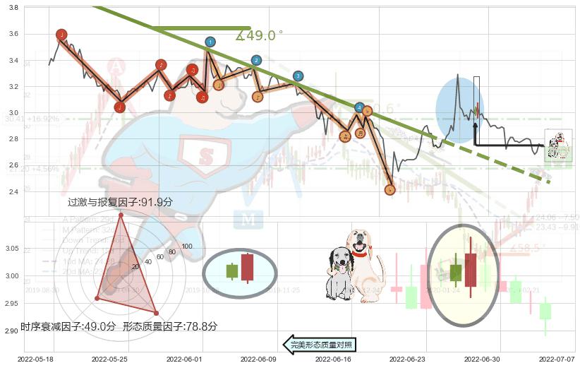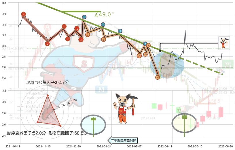 ➢ 2021-09-08-2022-05-24下跌趋势存在反转上涨[机会],其原下跌趋势的阻力位(2.466)已被突破[强支撑信号],原下跌趋势角度: 49.0˚