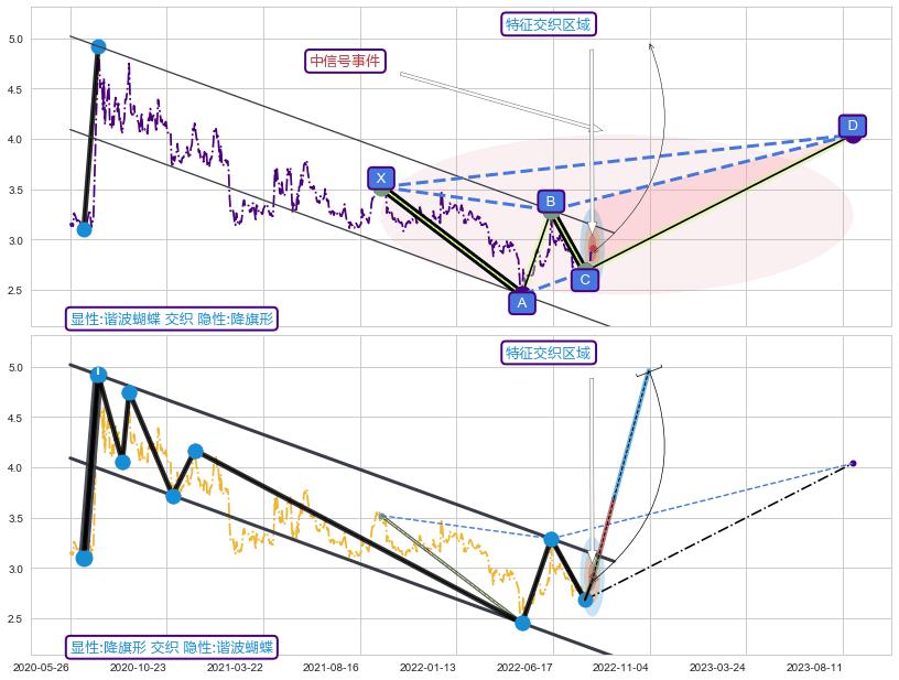 ➢ 谐波蝴蝶属【中级别信号事件】降旗形属【长级别信号事件】中长周期组合信号事件,中长事件长度比41.56%