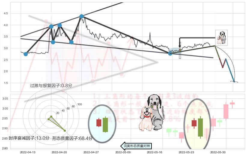 ➢ 阴包阳形态 🔜 扩散三角反转临近支撑猜想转换阻力下跌 综合量化分数:49.25 【中性】