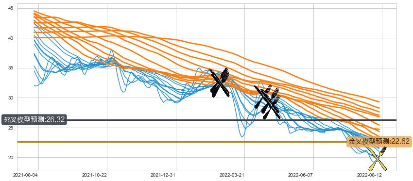 ➣ 35小时均线于(2022-02-22: 32.76)形成【死叉】基于【死叉历史模型】预测死叉后最低波谷价格: 29.06, 死叉后最低价格18.59,已经下跌超出预测最低波谷价格, 预期反弹