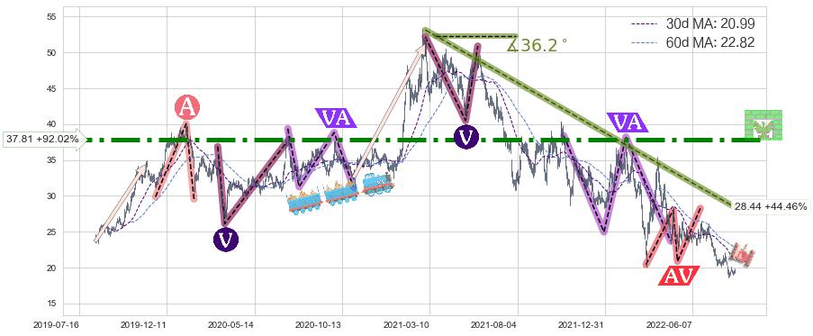 ♘ 阻力价格位37.81,可信任强度99.00%,距离最后交易2022-08-12形成的收盘价格19.69相差 +92.02%