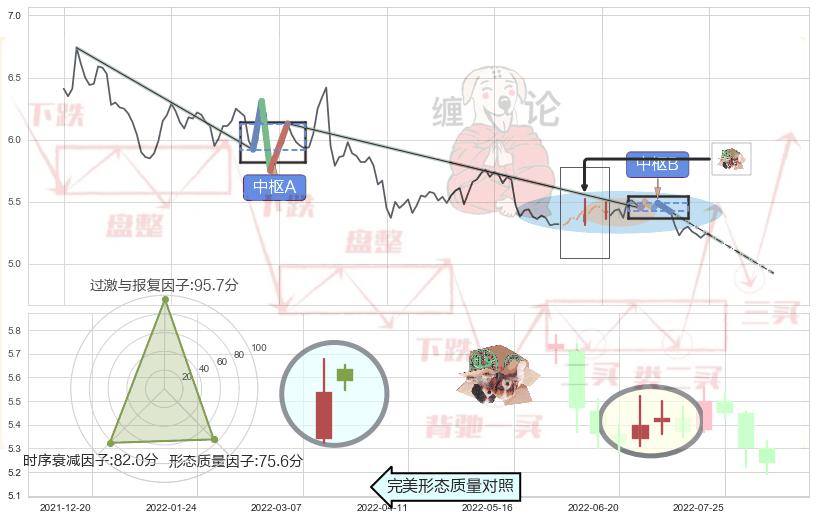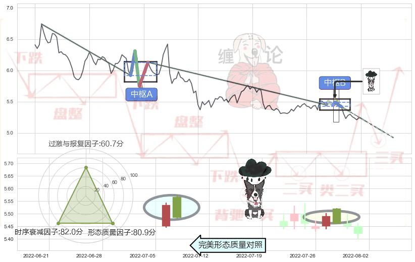 ➢ 【中枢B】:2022-07-21-2022-08-01,中枢由5笔构成,共8交易日, ZG=5.49, ZD=5.45