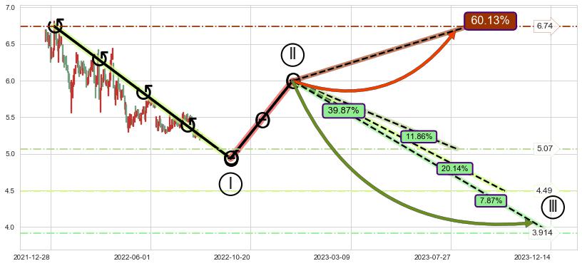 ➣ AI预测: 假定反转启动后, 第❸目标位置(2023-04-12, 6.74)