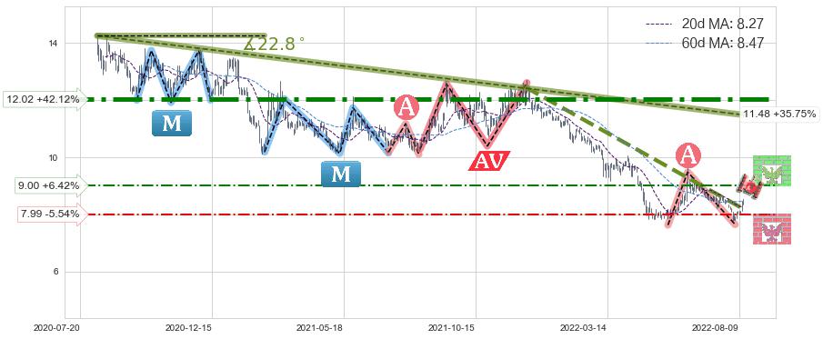 ♘ 阻力价格位9.00,可信任强度40.09%,距离最后交易2022-08-12形成的收盘价格8.46相差 +6.42%