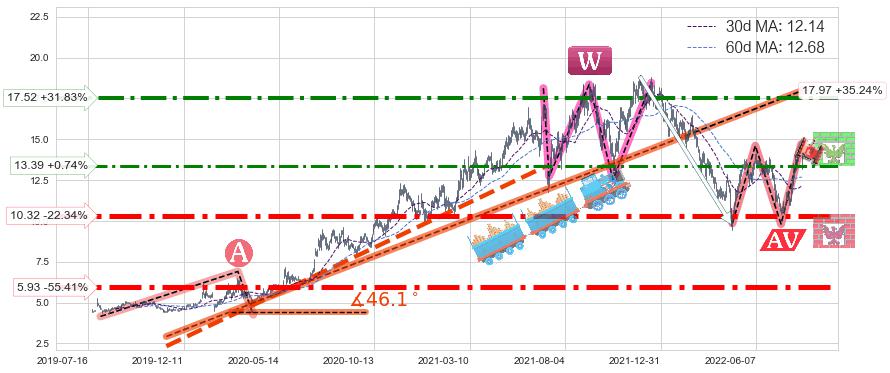 ♘ 阻力价格位13.39,可信任强度69.60%,距离最后交易2022-08-12形成的收盘价格13.29相差 +0.74%