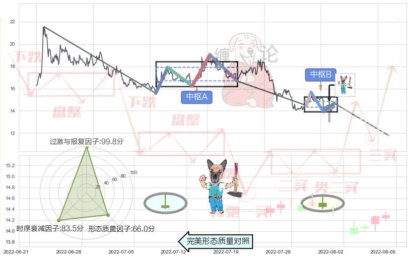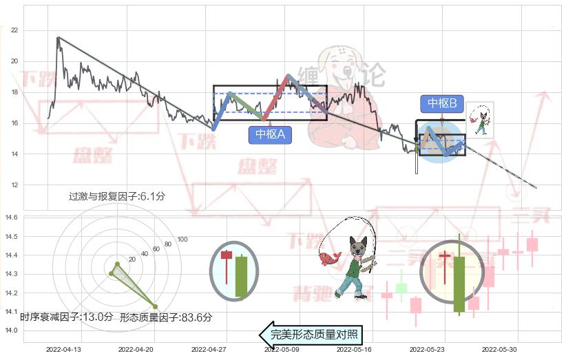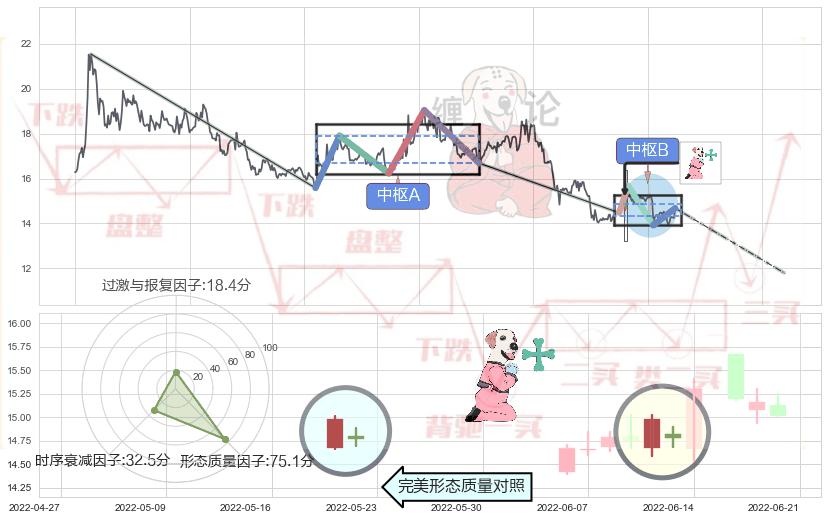 ➢ 下跌孕十字星 🔜 缠论中枢点破位中枢B支撑下拉 综合量化分数:46.71 【中性】