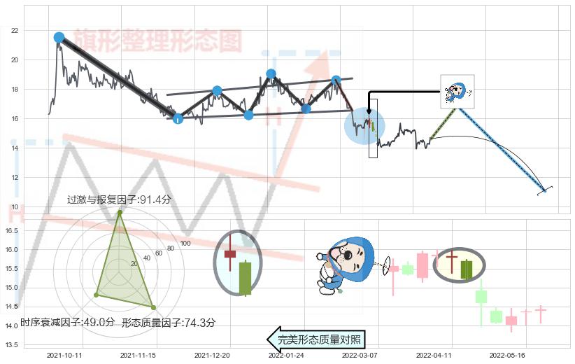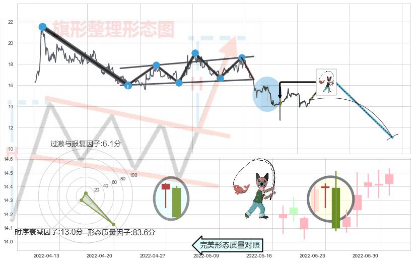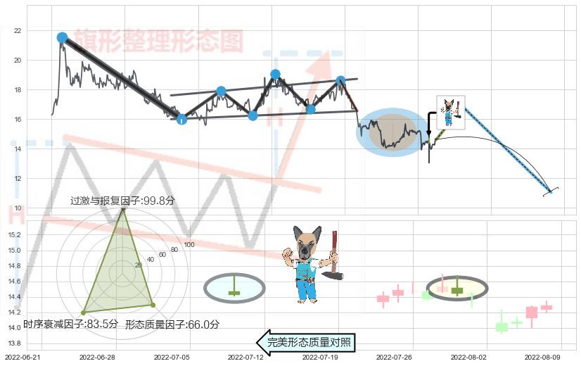 ➢ 下跌螺旋桨 🔜 升旗形支撑破位转换阻力下跌 综合量化分数:41.31 【偏空】