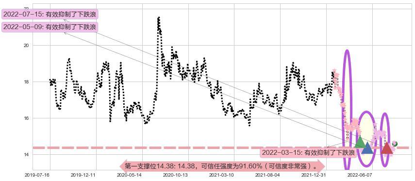 ♘ 支撑价格位14.38,可信任强度91.60%,距离最后交易2022-08-12形成的收盘价格14.60相差 -1.54%