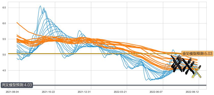 ➢ 90小时均线于(2022-07-28: 4.57)形成【死叉】基于【死叉历史模型】预测死叉后最低波谷价格: 3.937, 死叉后最低价格4.27,尚未达到预测最低波谷价格, 预期继续下跌