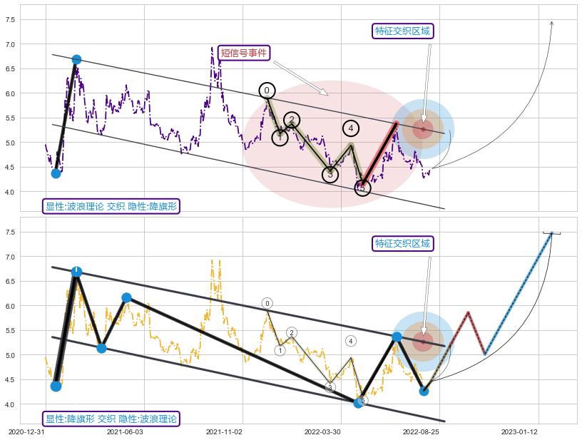 ➢ 波浪理论属【短级别信号事件】降旗形属【长级别信号事件】长短周期组合信号事件, 短长事件长度比34.55%