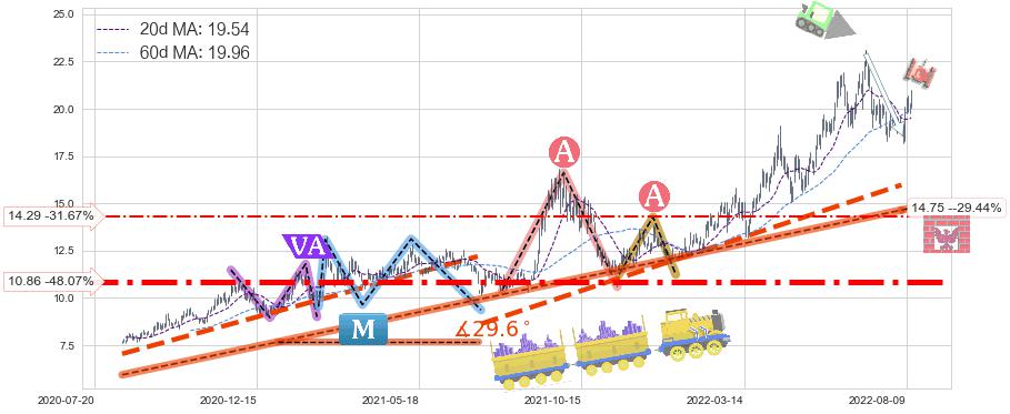 ♞ 20日均线:19.54,60日均线:19.96→ 快线<慢线