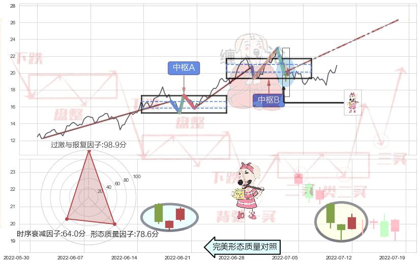 ➣ 【中枢B】:2022-06-17-2022-07-08,中枢由4笔构成,共16交易日, ZG=20.73, ZD=20.03
