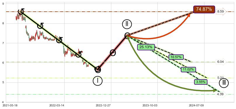 ➣ 大趋势循环浪继续向下概率25.13%
