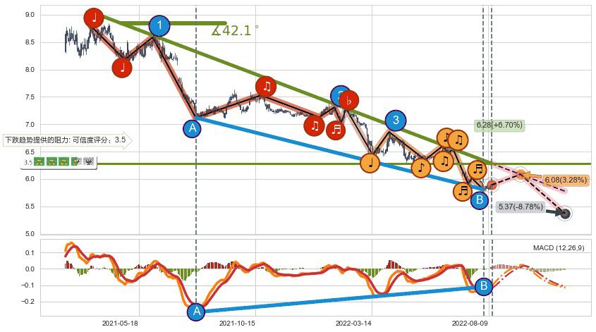 ➣ 预测:2022-11-09,【继续下探】稳定目前下跌趋势的前提下,预测价格:5.37