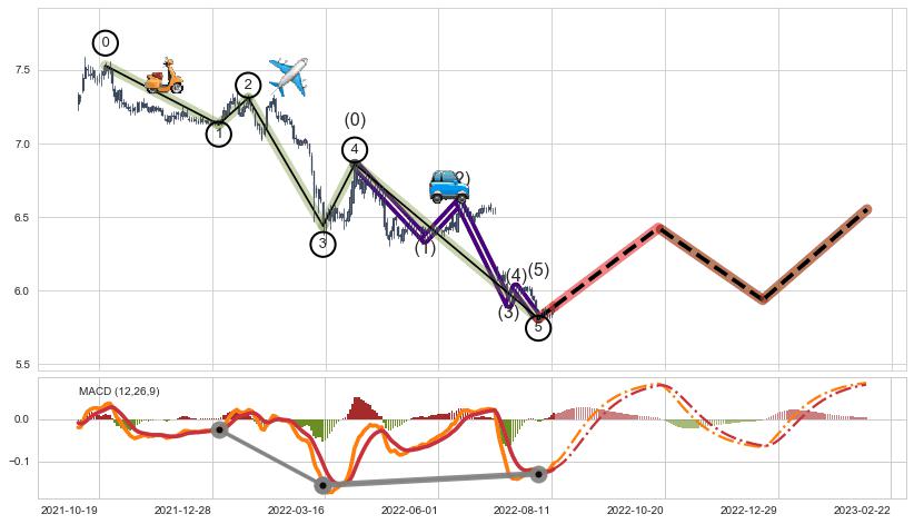 ➢ 循环浪继续向下【最高】位置(2023-10-05, 5.65),匹配聚类样本比例29.26%, 可能性概率11.96%