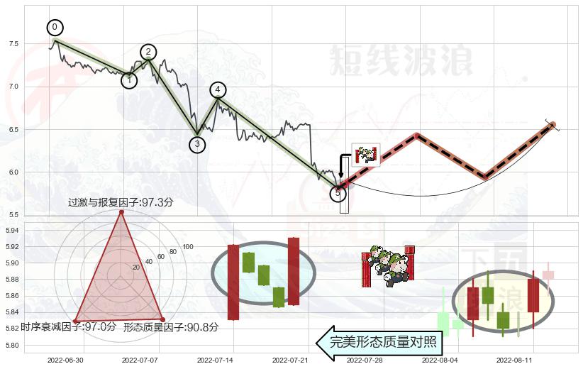 ➢ 🕰 价格走势在2022-08-05至2022-08-11期间形成上升三部曲(升势三鸦),残存影响值:5.01