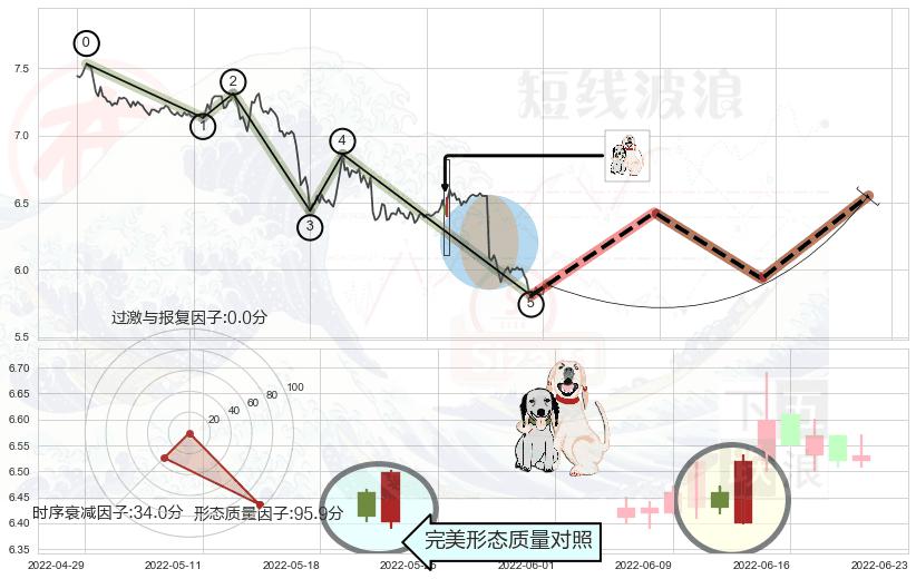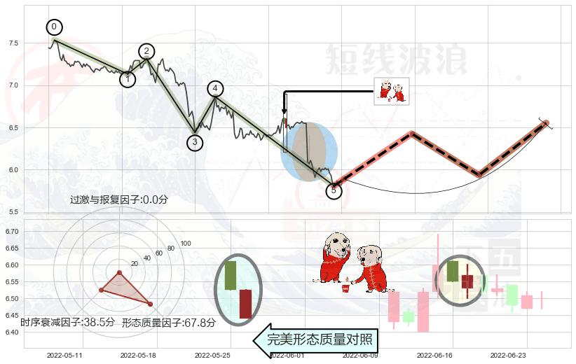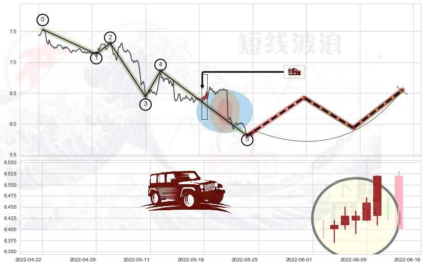 ➢ 🕰 价格走势在2022-06-06至2022-06-10期间形成低档五阳线,残存影响值:0.66