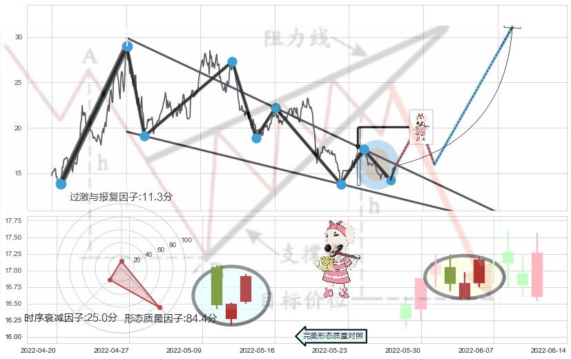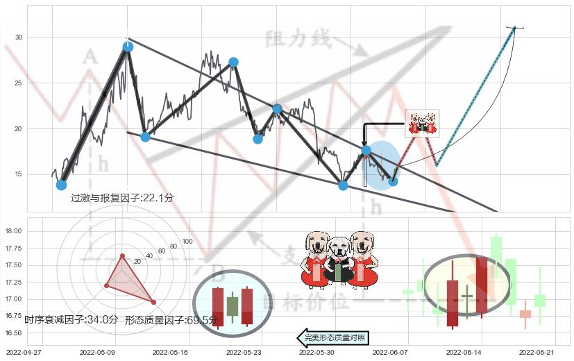 ➢ 🕰 价格走势在2022-06-10至2022-06-14期间形成两红夹一黑,残存影响值:2.25