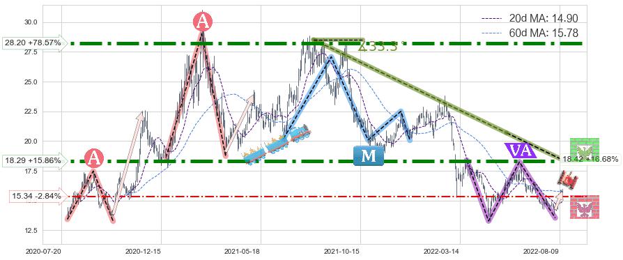 ♘ 阻力价格位18.29,可信任强度89.40%,距离最后交易2022-08-12形成的收盘价格15.79相差 +15.86%