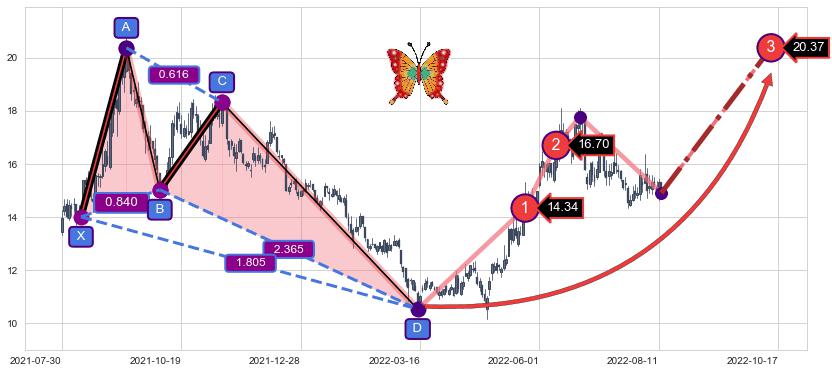 ➣ 已完成【蝴蝶】形态起点X: 2021-08-11, 终点D: 2022-03-15, 共142交易日