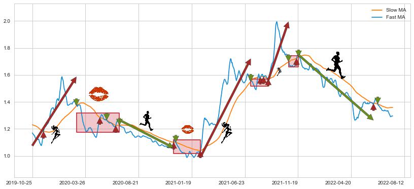 2021-11-22至2022-06-23 慢线与快线呈空头排列, 慢线与快线接触少,无缠绕