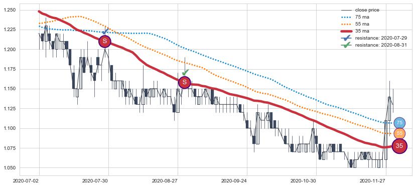 ➣ 历史趋势中共发现14处重要支撑阻力位,其中关键支撑位6处, 关键阻力位8处