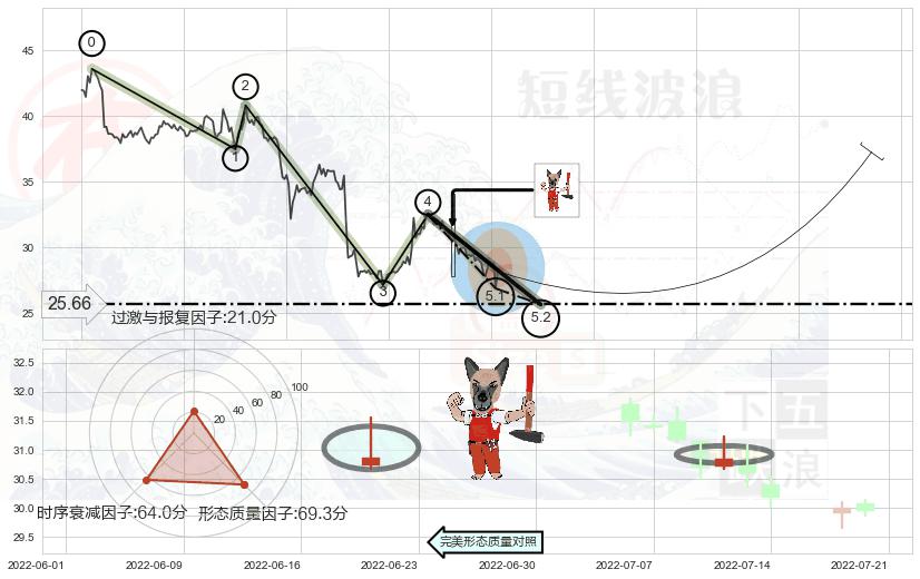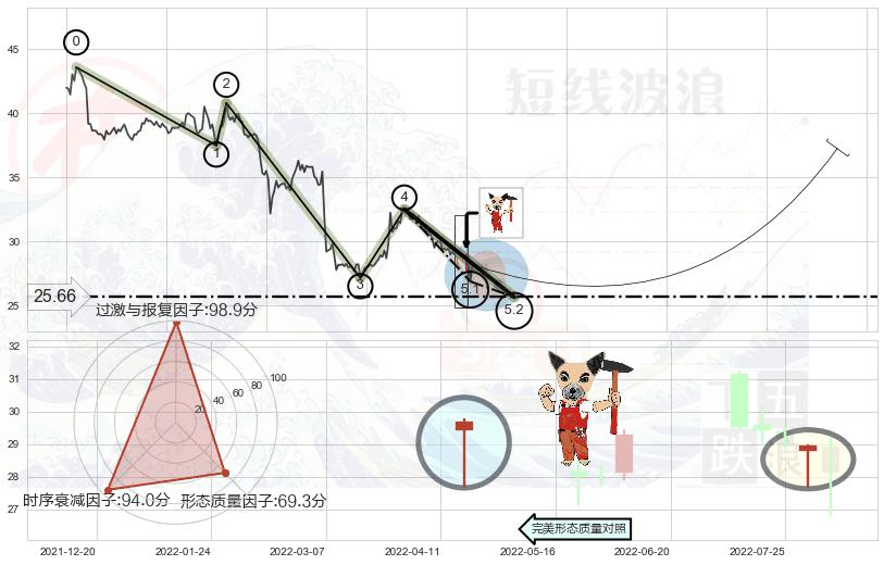 ➣ 5.1: 预测当前第5浪位置(2022-08-10, 26.88),仍然有下跌空间