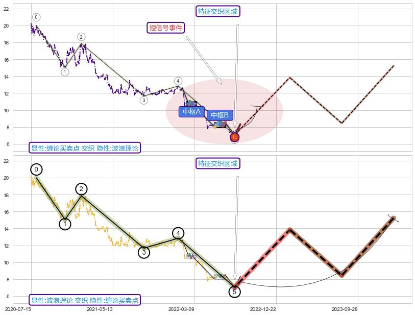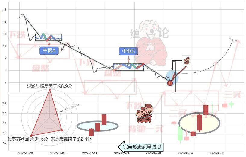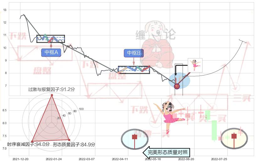➣ 【中枢B】:2022-05-24-2022-06-30,中枢由6笔构成,共27交易日, ZG=8.47, ZD=8.20