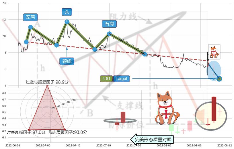 ♘ 支撑价格位5.91,可信任强度97.98%,距离最后交易2022-08-12形成的收盘价格6.52相差 -9.30%
