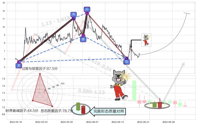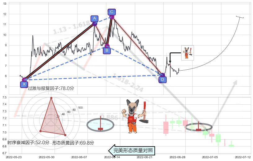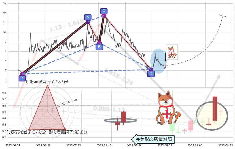 ➢ 曙光初现形态 🔜 谐波鲨鱼d拐点上涨支撑 综合量化分数:50.67 【中性】